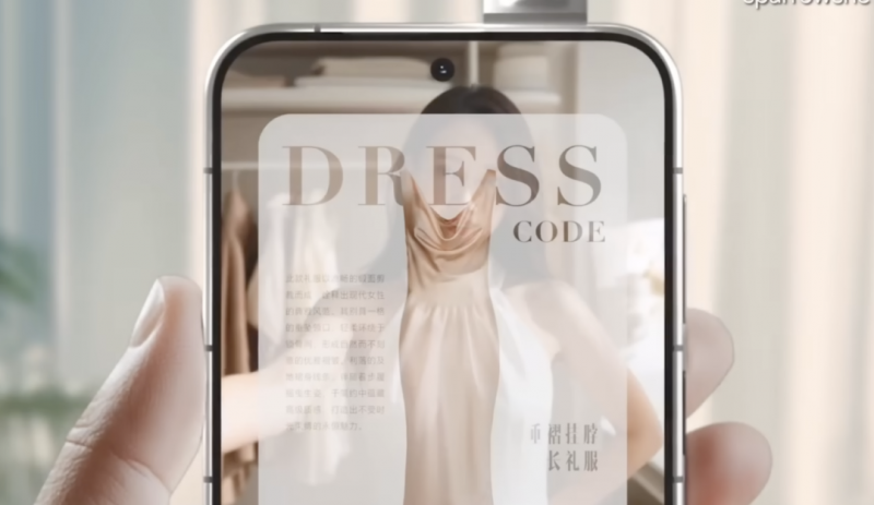 还有镜头当前置摄像头使用等比较常规的玩法。当用户在选择衣服时,摄像头自动调整角度,并能在屏幕上展示“DRESS CODE”等AI辅助信息,体现了AI与影像的深度结合。