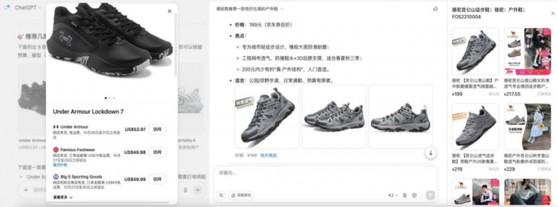 OpenAI商务负责人曾透露,ChatGPT的商品推荐“有机且非赞助”,公司不会从交易中抽成,但未来可能收取约2%的联属佣金。也因此,ChatGPT与Kimi更像是“导流者”,主要通过广告与佣金变现。