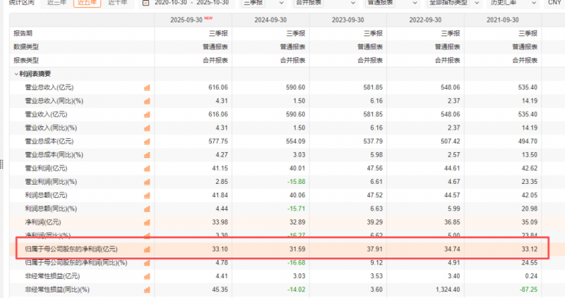 今年前三季度,这家中药龙头实现营收616.06亿元,同比增长4.31%;归母净利润33.1亿元,同比增长4.78%。
