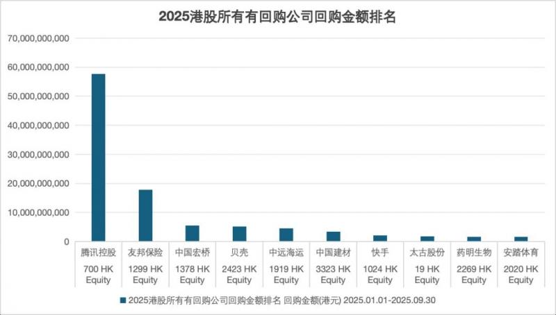 彭博终端数据显示,2025年前三季度,贝壳的回购金额为48.48亿港元,在港股所有公司中,回购金额排名第四。