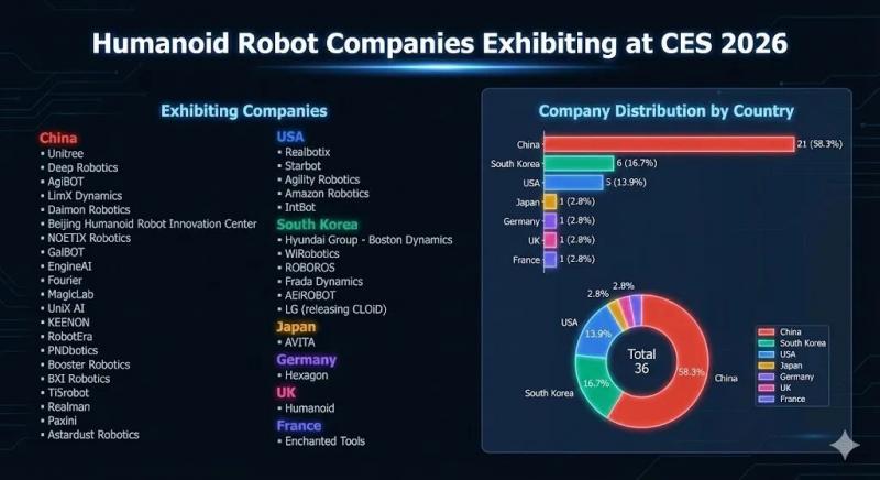 这里原本是全球机器人的竞技场,但今年格外像华强北——本届 CES 机器人展商中,中国企业多达 149 家;在人形机器人领域,中国企业的占比更是突破 55%。