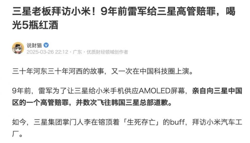 2016 年,雷军亲自坐飞机到韩国三星总部,只为给三星的某个高管“斟茶认错”。
