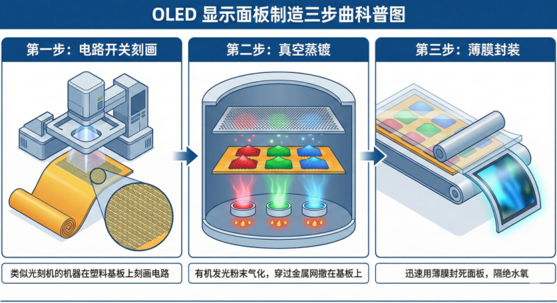 这里得先简单介绍一下,造一块 OLED 屏幕,主要分为三个步骤: