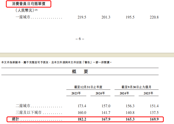 尽管会员消费整体高企,但主要靠一线城市人群撑场。二、三线城市门店的会员日均账单价,分别从2023年的173.4元、160元,下降至2025年前三季度的151.4元、137.5元。