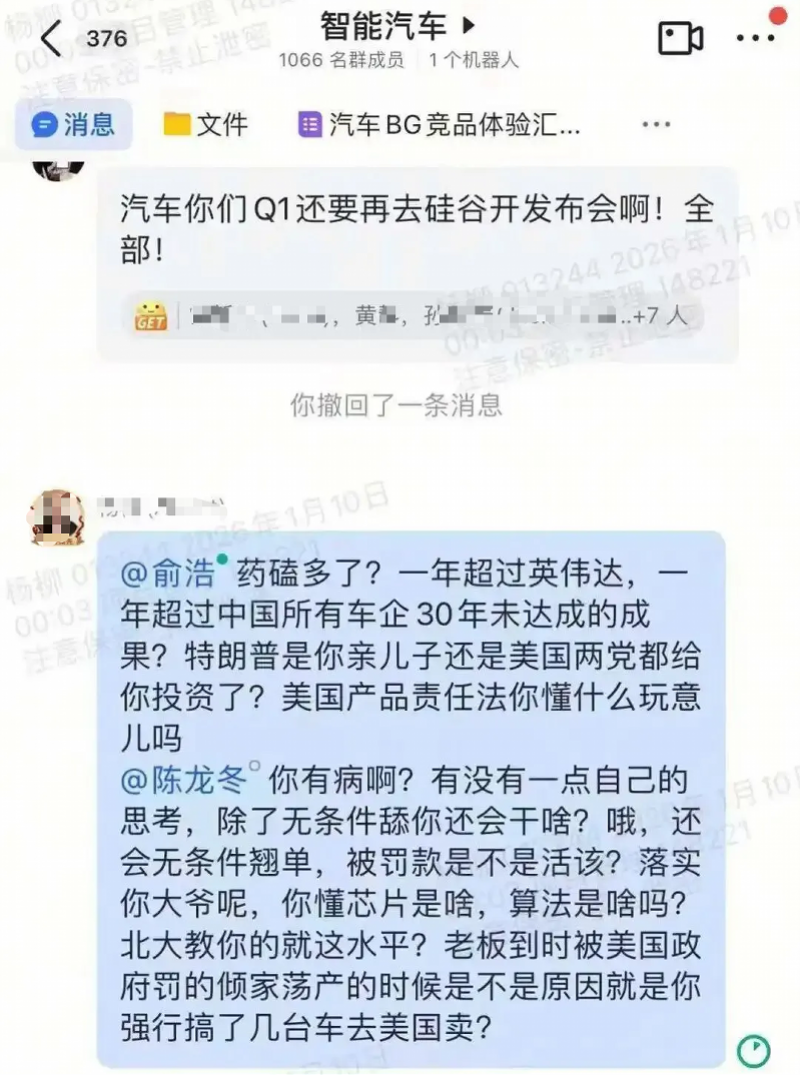 2026 年 1 月 15 日,一张火药味十足的微信群聊截图开始在网络流传。截图显示,在追觅科技成员超过千人的工作群内,有员工公开圈出创始人兼 CEO 俞浩,对其近期提出的战略目标进行了近乎“贴脸开大”的反驳。