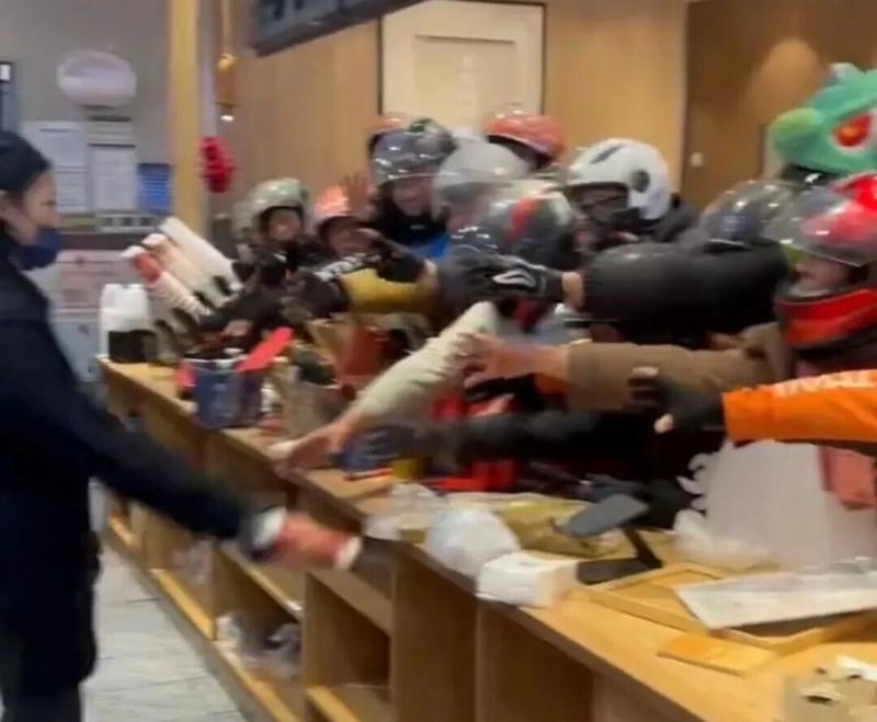 结果,千问奶茶免单一出,网友们立刻“真香”。紧接着,奶茶店爆了,外卖小哥疯了,服务器崩了……外卖小哥们抢出餐,竟然抢出了一种丧尸电影的既视感: