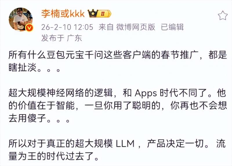 而在AI时代,技术主权的优先级已高于一切,红包换来的流量红利,再也无法填平技术代差的鸿沟。