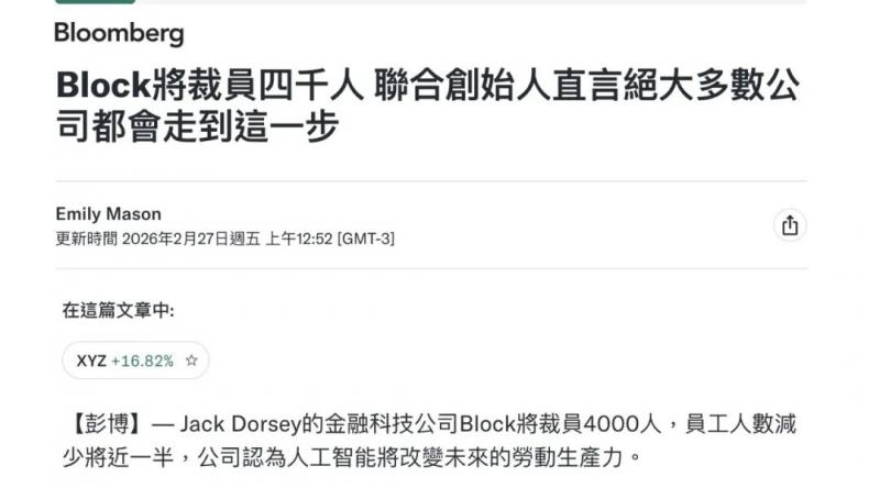 外媒Reuters 的分析师称,这是“AI时代的一个seminal moment(标志性时刻)”,因为Block把AI嵌入运营、主动重构组织,股价因此大涨。