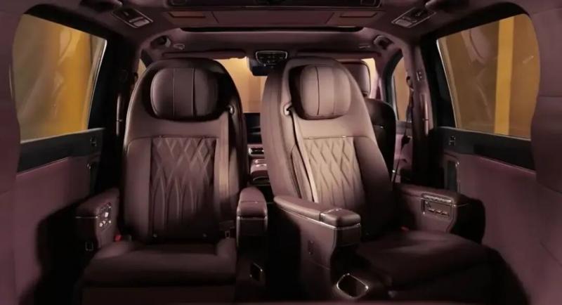 内饰氛围明显往豪华行政车靠拢:水晶旋钮、木饰板、后排冰箱、森林氧吧制氧系统……该堆的配置基本都堆上了。