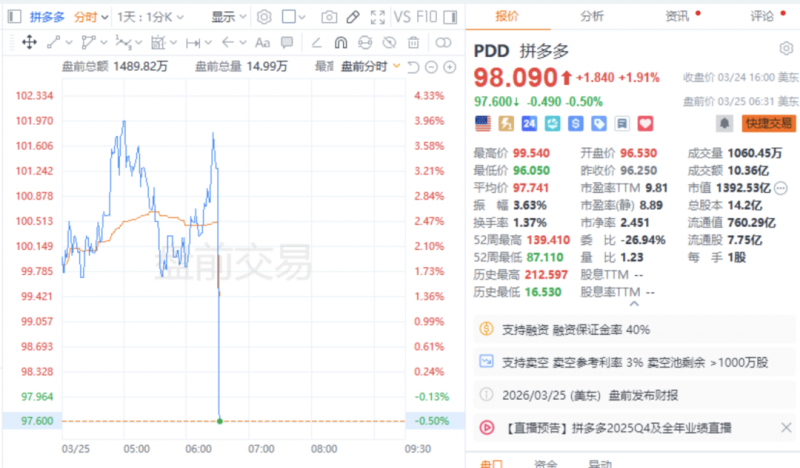 3 月 25 日,财报发布后,拼多多迎来股价的短线跳水。