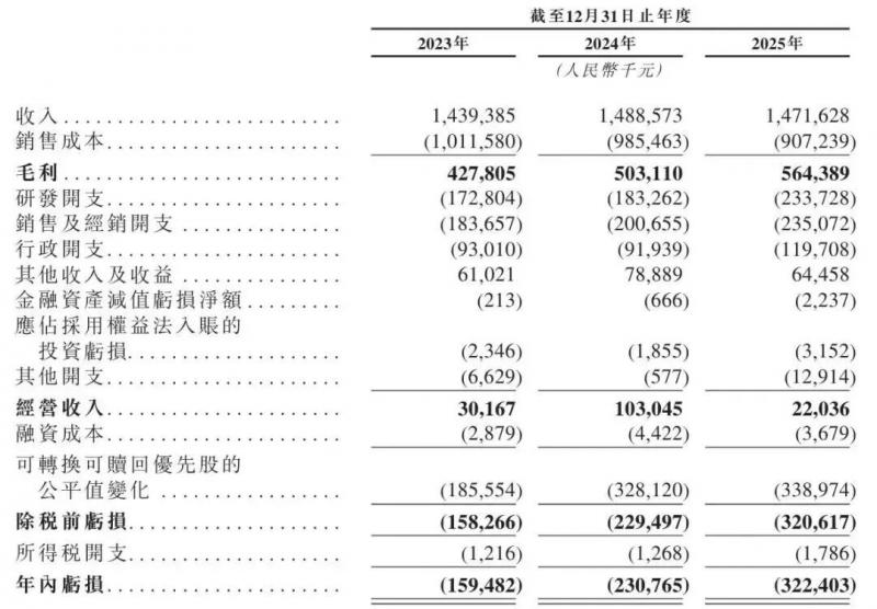 但同期,账面录得净利润分别为-1.59亿元,-2.31亿元,-3.22亿元,亏损连年扩大。