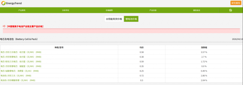 宁德时代凝聚态电池首批产品将于2026年第三季度交付整车客户;比亚迪自研半固态电池预计第四季度搭载仰望U8改款和汉L车型。