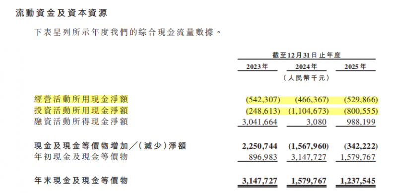 2023-2025年,其经营现金流分别净流出5.42亿元、4.66亿元和5.3亿元;投资现金流分别净流出2.49亿元、11.05亿元和8亿元。