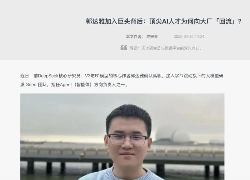 同样是今年 3 月,前DeepSeek 核心研究员郭达雅转入字节 Seed 团队,方向就是 Agent。